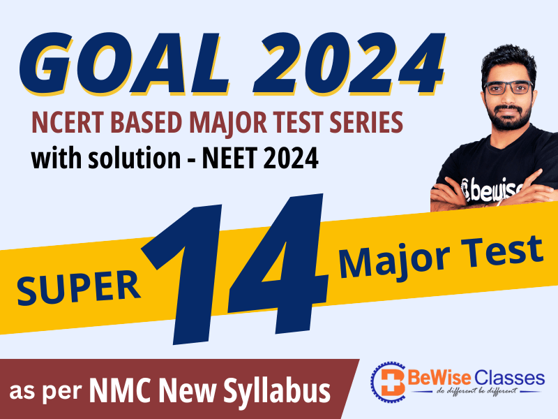 GOAL 2024 - NCERT based Major Test Series for NEET 2024 - 14 Mock Test with Solution Introducing "GOAL 2024" – Your Ultimate NCERT-Based Major Test Series for NEET UG 2024 Exam || "Perfecting your NEET exam preparation requires diligent practice, as the saying goes, 'Practice makes a man perfect.' A pivotal tool for assessing your readiness is through NCERT-based mock tests. If you're looking for a quick revision and want to check your NEET preparation, join BeWise Classes GOAL 2024 – NCERT-based All India Major Test series for NEET 2024. ● Are you in search of the best All India Major Test Series for NEET 2024? ● Are you looking for a Pure NCERT-based test series for the NEET 2024 exam? ● Do you require a test series for NEET 2024 that provides a detailed explanation for each question? ● Do you want to do quick & multiple revisions of NEET syllabus with the help of a test series? ● Do you wish to assess your NEET exam preparation and compete with students nationwide? ● Is 700+ your target score in NEET 2024 exam? If your answer is YES to any of these questions, then you've come to the right place for an NCERT-based All-India Major Test Series for the NEET 2024 exam. BeWise Classes’ GOAL 2024 – NCERT-based ALL India Major Test Series is India’s best online/offline for the NEET 2024 exam. GOAL 2024 is exactly based on the NEET Exam Latest Pattern & specially designed to test and analyze your preparation. This Test Series includes 14 mock tests with detailed explanations. As it includes 4 Class Wise Tests (2 class 11 & 2 Class 12 tests) & 10 Major (Full Syllabus Tests), it provides you with a structured learning plan along with a Revision Strategy, real-time preparation analysis & a chance to compete with All India students. If you want to do MBBS from the top medical colleges of India, all you need is BeWise GOAL 2024 - All India Major Test Series for NEET 2024. ● GOAL 2024 Test Series Highlights: ❶ 14 NCERT-based Mock Tests with detailed explanations. ❷ 4 Class-wise (2 class 11 & 2 Class 12 tests) Mock Tests for a quick revision of syllabus. ❸ 10 Major (full syllabus) mock tests with detailed explanations for NEET 2024. ❹ 100% Questions are solely based on NCERT syllabus. ❺ 2500+ NCERT-based MCQs for NEET with step-by-step explanation. ❻ Complete Class 11 & 12 Syllabus Covered for NEET 2024 exam. ❼ Downloadable PDF each mock test so that students can practice at home. ❽ In-depth analysis of the tests helps in understanding the weak points. ❾ All India Ranks are available - Check your performance at All India Level ❿ Curated by NEET expert from Kota. Instructors: 1. Sunil Sir – Best Chemistry Faculty of Kota 2. Shivali Ma’am – More than 15 Years’ Experience. (Biology) 3. Himanshu Sir – More than 8 Years’ Experience (Physics) ● Course Features: ❶ Prepared by Best faculty of Kota – All the tests & explanations are prepared by the best faculty of Kota. ❷ NEET Latest Pattern Followed – The latest pattern of the NEET exam is followed, which allows students to understand patterns & difficulty levels. Assertion-Reason, Statements and Match the Column type questions are included in the mock tests. GOAL 2024 is designed as per NMC new syllabus. ❸ Mistake Analysis – Detailed explanation helps students to identify mistakes & rectify them & improve their question-solving ability ❹ Short Tricks & Methods – Test Solutions help students to learn Tricks & Short-cut methods that help solve questions in minimum time. ❺ Quick & Multiple Revisions – Class-wise & full syllabus tests help in multiple revisions of the Physics, Chemistry & Biology syllabus for the NEET 2024 exam. ❻ Best for Questions Practice: 2500+ NCERT-based questions are available in the GOAL 2024 Test Series, helping students to practice a lot and grasp the concepts. ❼ Access Anytime Anywhere – Students can download the PDF of the tests & can access it offline. Content is available round the clock. ❽ Performance Report - A Detailed analysis report is provided to check the timely preparation level & enabling to improve score. Still Confused? Let us help you to choose the right course for you! Book a FREE Counselling Session - Call 7340250100 Note: Medium - English Only Fee is non refundable.